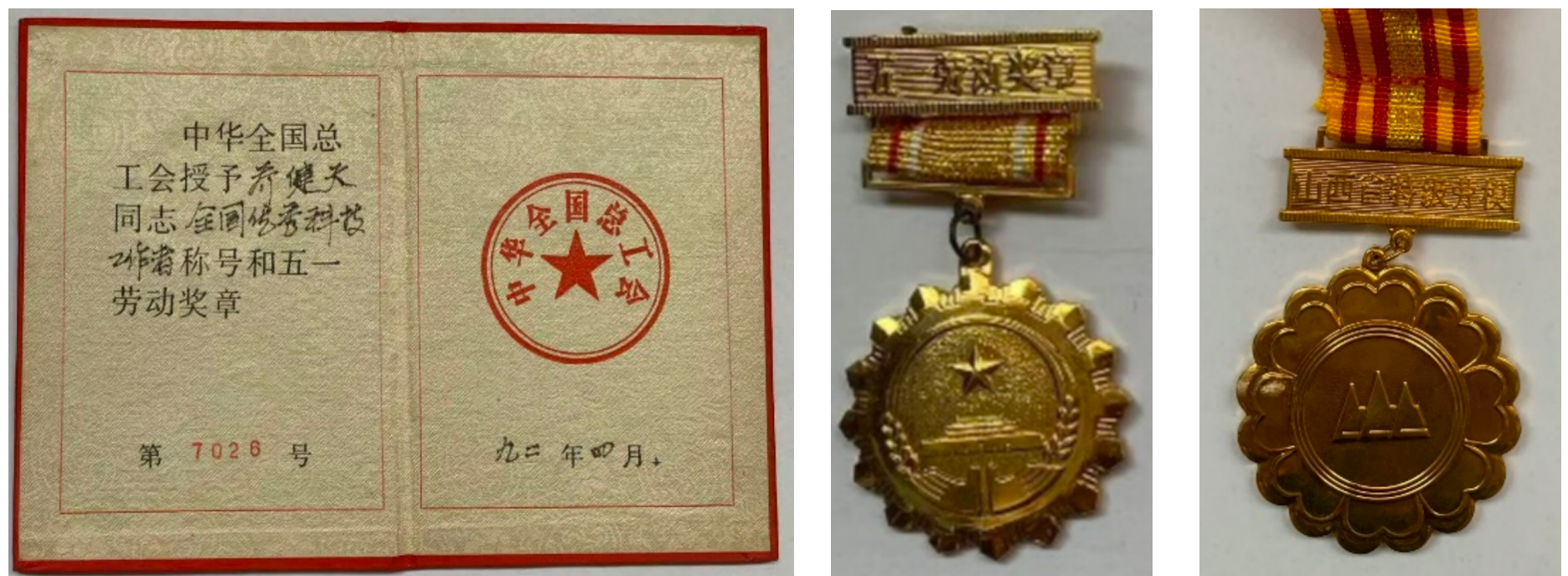 乔健天同志荣获“全国优秀科技工作者称号”,“全国五一劳动奖章”,“山西省特级劳模” |