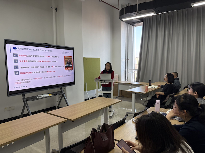 2025年12月17日,本次集体备课围绕生理学教学中深化课程思政建设展开专题研讨。主讲人杨小荣老师系统阐述了在专业课程中强化思政教育的重要意义,强调生理学教学不仅要完成知识传授,更要肩负起价值引领的重要使命,实现知识教育与思想教育的有机统一。