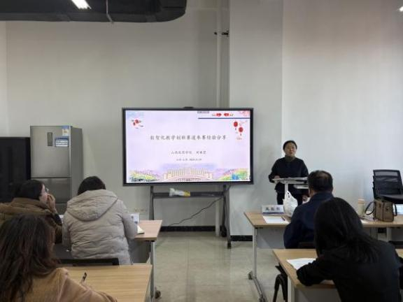 为让分享更具实操性,刘丽霞老师结合自己的参赛作品,进行了数智化教学创新实践案例展示,完整呈现了从选题构思、教学设计、技术融合到课堂实施的全流程。案例中,她通过互动教学平台实现课前预习数据收集、课中实时互动答题与学情反馈、课后个性化作业推送,借助AI学情分析工具精准定位学生知识薄弱点,针对性调整教学策略,有效提升了课堂教学效率。刘老师还分享了参赛过程中的细节把控技巧,如教学视频的拍摄剪辑要点、教学成果材料的梳理规范等,让在场教师深受启发。