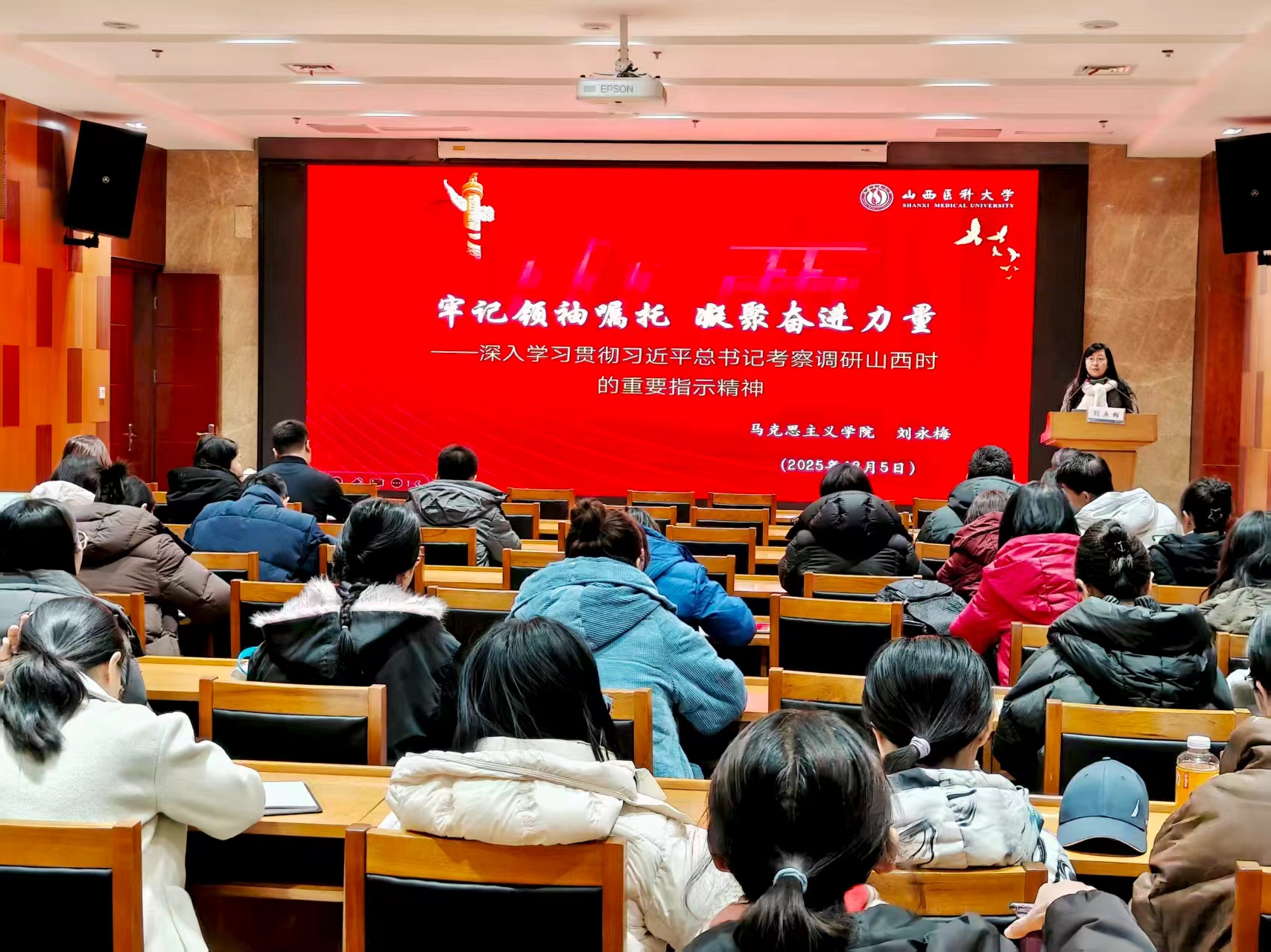 刘永梅以《牢记领袖嘱托 凝聚奋进力量——深入学习贯彻习近平总书记考察调研山西时的重要指示精神》为题展开专题讲解。她围绕习近平总书记提出的“ 努力在推动资源型经济转型发展上迈出新步伐,奋力谱写三晋大地推进中国式现代化新篇章”等核心要求,结合习近平总书记在太原、运城的考察具体场景,重点解读了“将资源优势转化为发展优势”对高校人才培养的启示,明确提出辅导员要引导医学生立足山西发展需求,在专业领域深耕实干;此外,她还结合“赓续红色血脉”的要求,强调要在日常工作中融入伟大抗战精神等红色教育内容,厚植学生家国情怀。
