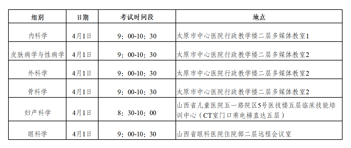 内科学、皮肤病学与性病学、外科学、骨科学的复试工作(专业课考试、专业技能考试)均安排在太原市中心医院(汾东院区),地址在山西省太原市小店汾东大街256号: