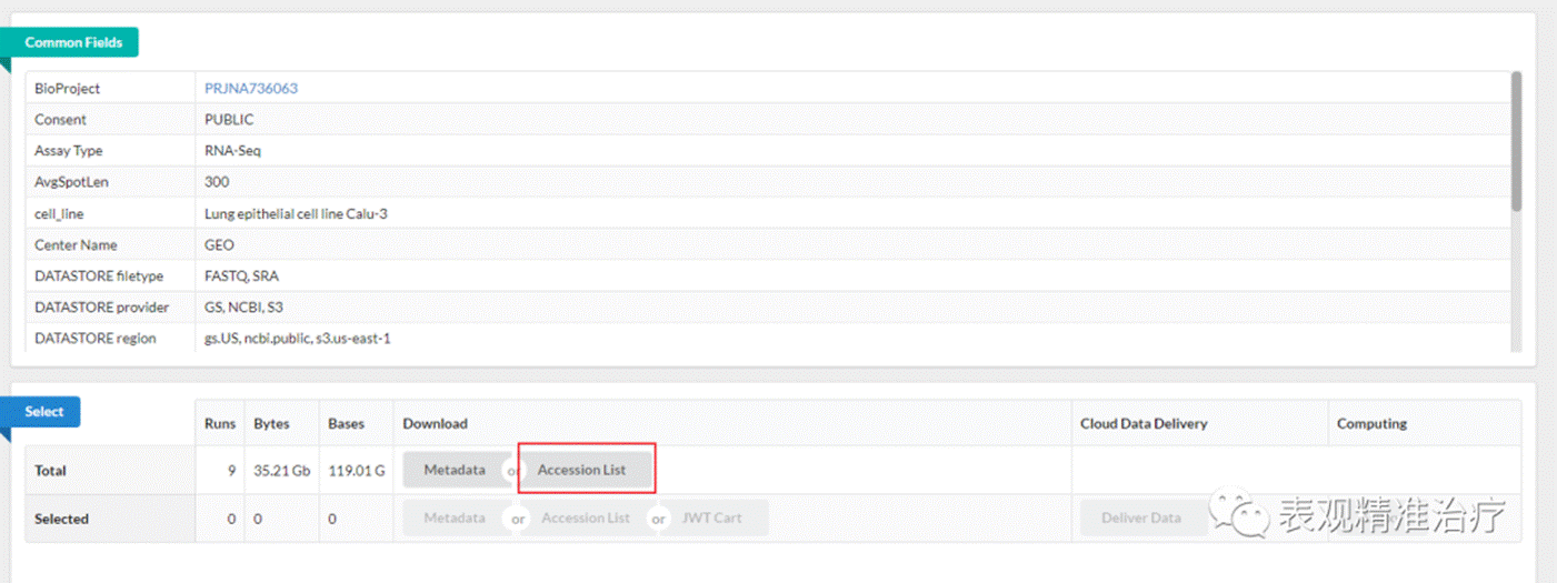 接着上面介绍的,选好数据后,可以找到数据编号(GSE 号或 SRA 数据号都可以,例如上面的就是 GSE176393 或 SRP323246)输入搜索框。操作如下图。
