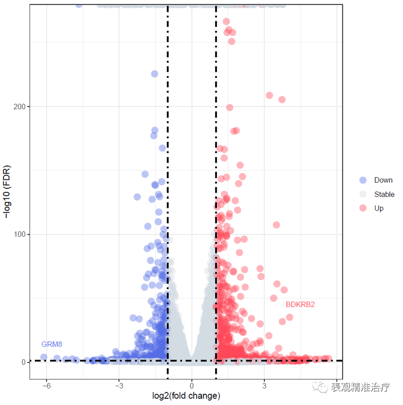 火山图是最常见的生物信息可视化图片,今天我们一起来画一张高颜值火山图!!!(文末附完整代码,快点收藏吧)