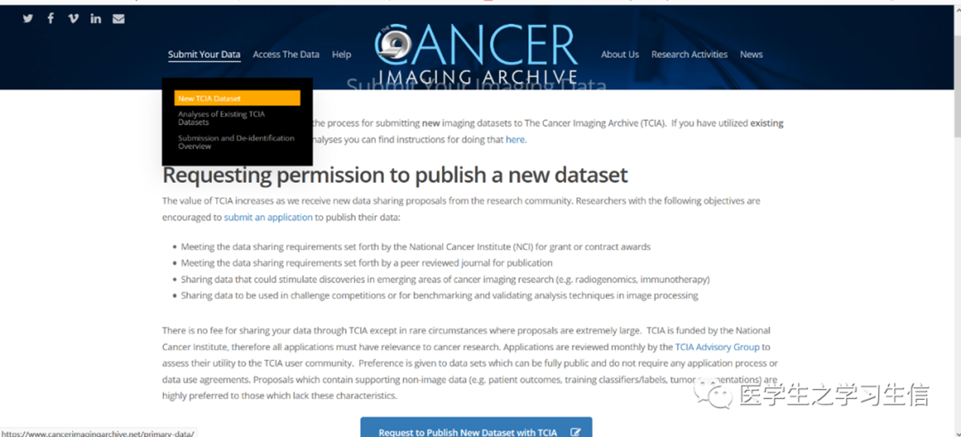 在填写完申请表并且通过后,就可以向TCIA提交新的影像数据集。
