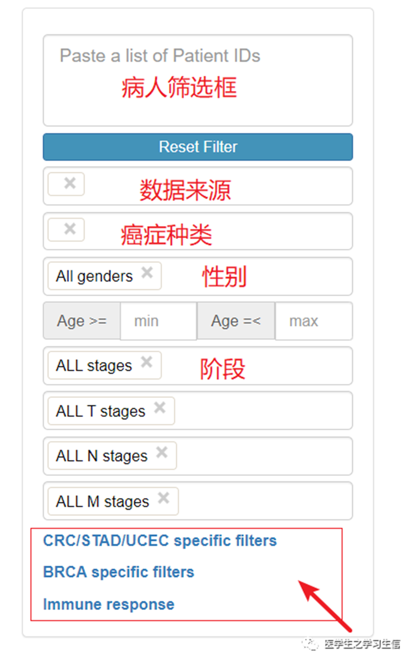 页面的左侧我们可以看到有一个病例信息筛选框↑