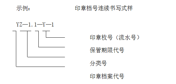 印章档案代号—保管期限代号—分类号—印章枚号