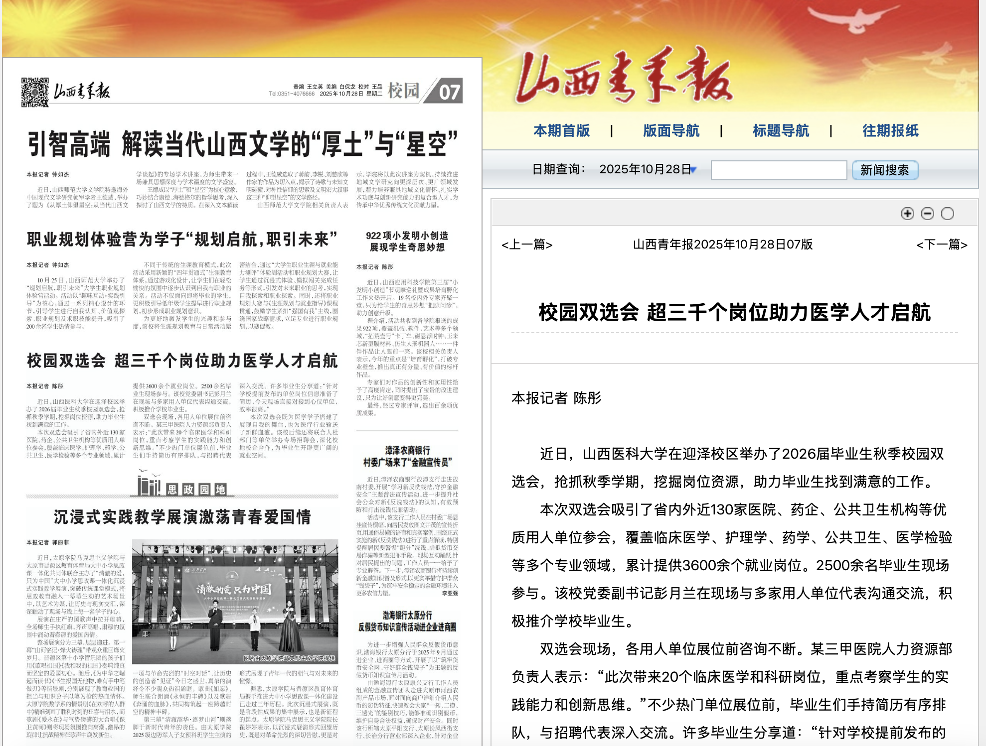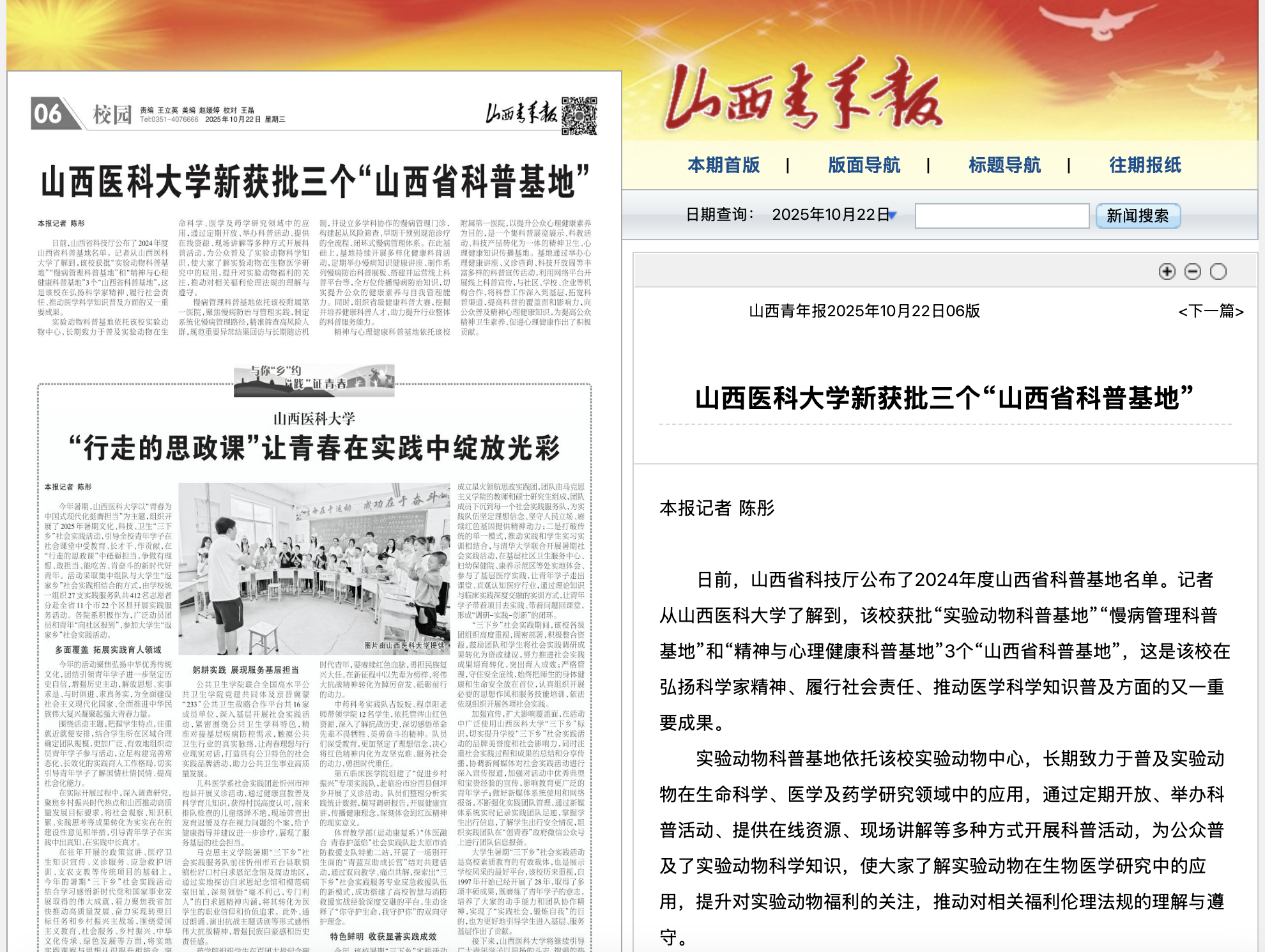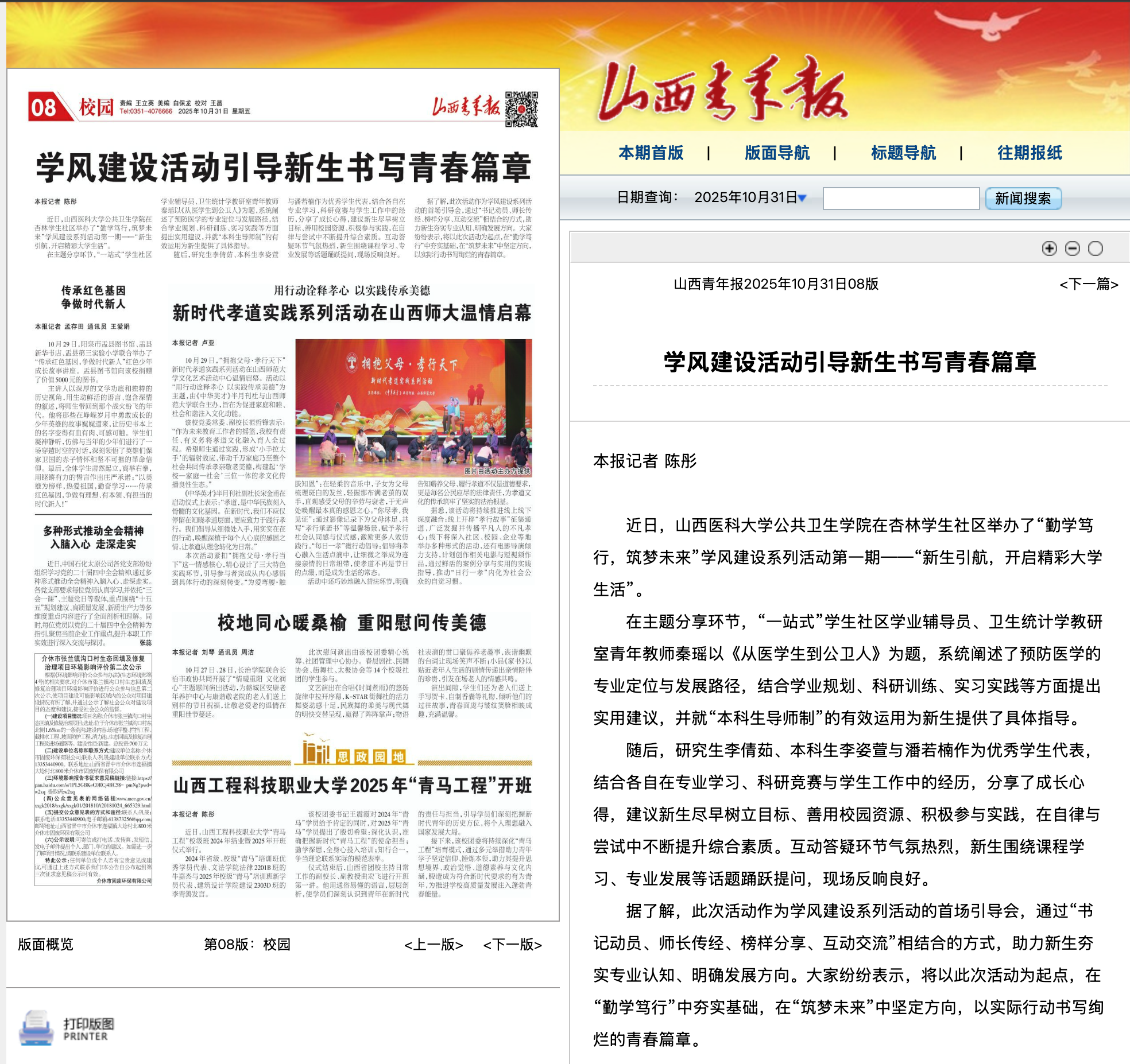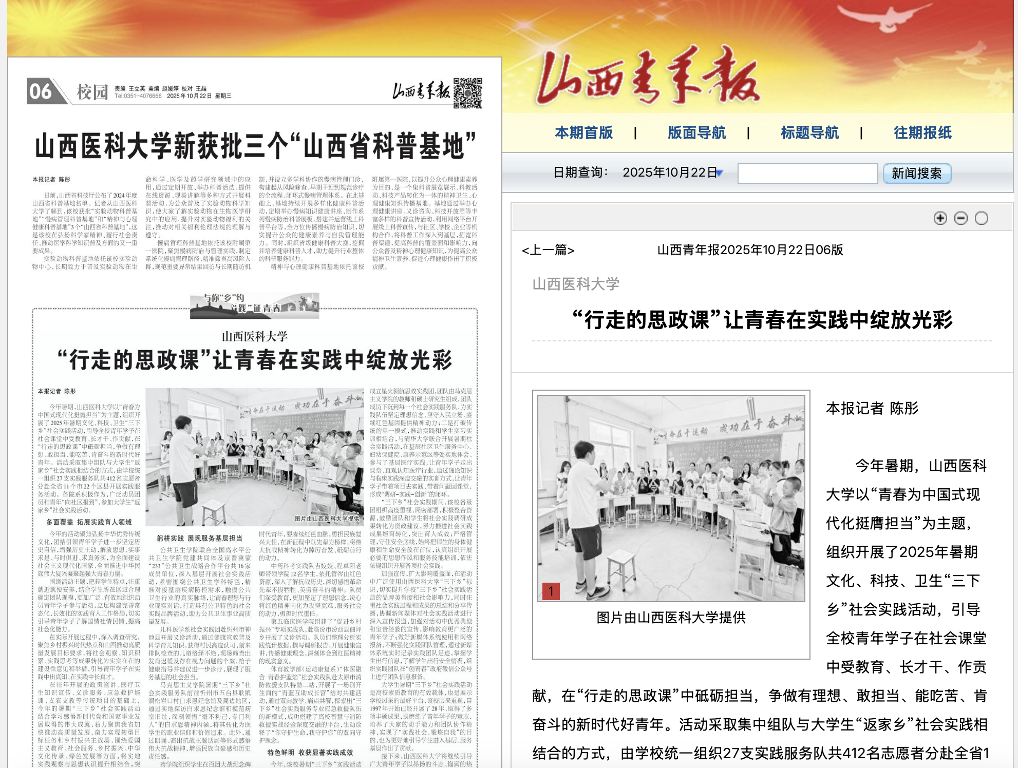 9月9日,《中国教育报》“教改风采”版刊发我校党委书记王军、校长解军的署名文章《推进“大思政课”建设 深化医德教育改革——山西医科大学“大思政—1345”“新医德”育人模式的探索与实践》。文章从“根植红色基因 百年文脉筑牢学校医德教育之魂”“紧扣时代之问 三阶段迭代升级学校医德教育模式”“深化系统创新 夯实学校医德教育核心架构”“坚持以生为本 打造‘五位一体’医德教育矩阵”“直面现实之需 问题导向破解学校...