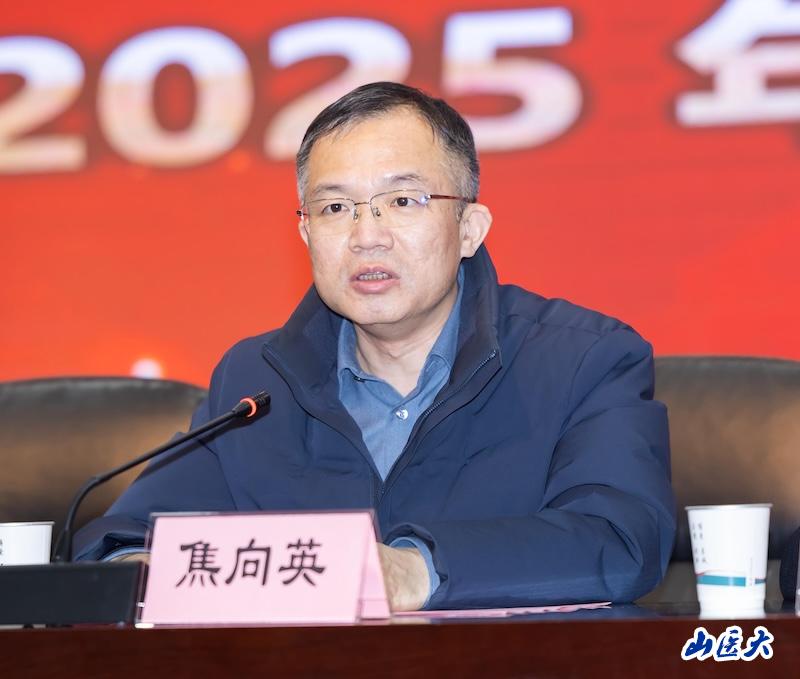 焦向英代表学校向大会的召开表示祝贺。他通报了学校2025年在医教研和学科建设等方面所取得的丰硕成果,高度肯定了口腔医学院(口腔医院)“十四五”期间在医教研管等方面取得的成绩,勉励全院教职医护员工以先进为榜样,凝心聚力,锐意进取,为推进“双一流”建设、服务健康山西与健康中国战略作出更大贡献,并向全体与会人员致以新春的美好祝福。