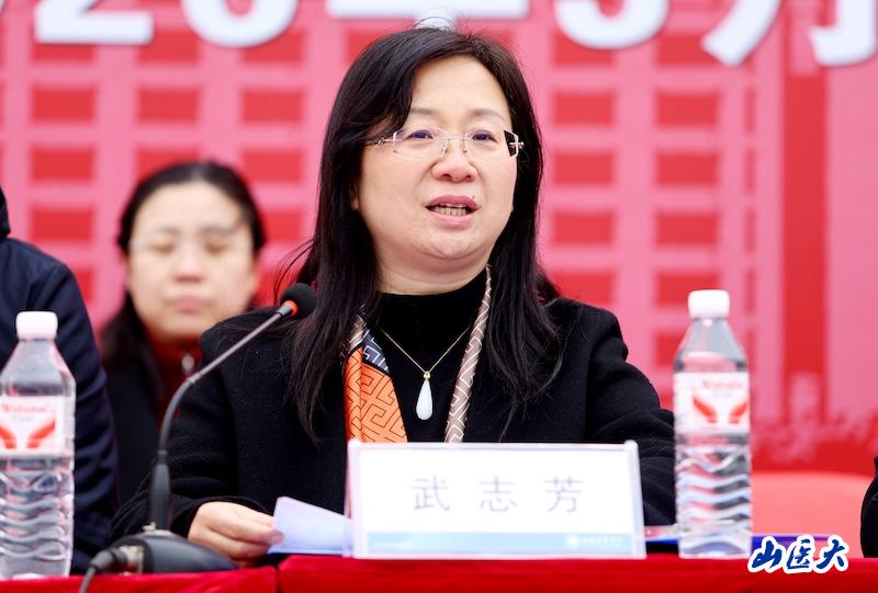 武志芳指出,从理论学习迈向临床实践是医学生涯中意义非凡的里程碑,寄语全体同学要保持乐观谦逊,在实践中汲取经验,将每一次挑战视为成长契机;要保持人文关怀,以敬畏之心传递医者温度;要保持团队合作,在实践中探索创新。她勉励同学们牢记山医校训,传承医者精神,以专业守护健康,以温情温暖人心,用青春与奋斗书写属于新时代医学生的精彩篇章。