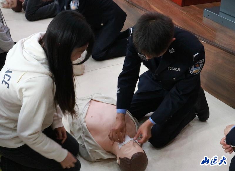 我校体育教学部(运动康复系)急救分队同学同步开展应急救护培训,讲解急救流程并现场示范演示,同学们认真学习实操,充分展现医警两校优势互补、深度联动、互助共建的良好风貌。