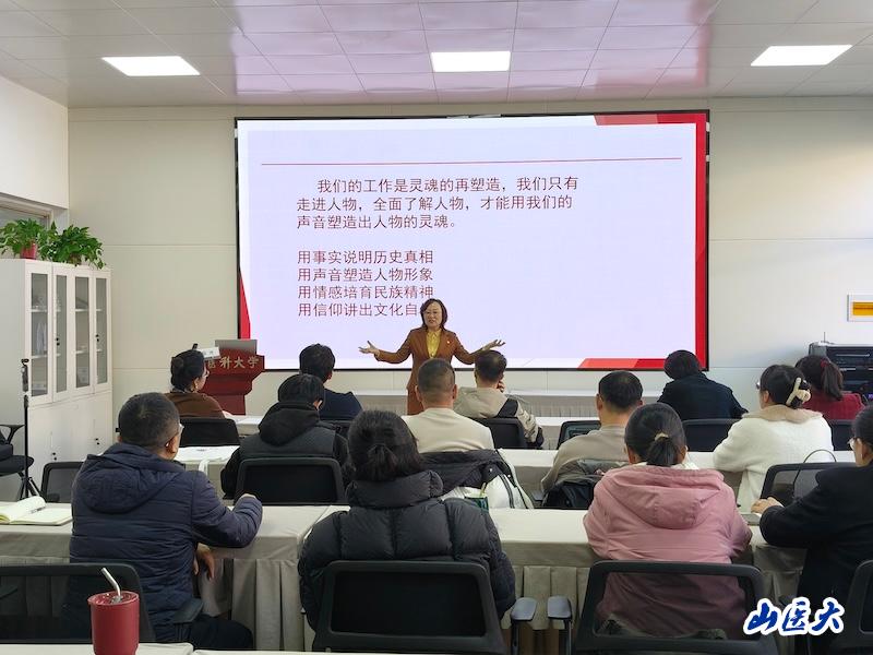 培训中,崔老师围绕“如何讲好党的先进事迹、优秀党员干部的感人故事、抗战精神等”核心主题,结合自身丰富讲解经历,以互动的方式引导老师们思考思政课如何创新表达、抽丝剥茧、深入浅出,把道理讲得动听、好听、耐听。她指出,要根据学生的认知特点、思维习惯和话语逻辑,持续锤炼讲授艺术,通过场景构建、细节描述等方法,强化教学的代入感和画面感,从而让学生有兴趣听、听得进去。崔老师鼓励教师们必须不断厚德励行,争做为学为人的表率,用高尚的人格魅力感染学生,用真理的力量感召学生,以深厚的理论功底赢得学生,做让学生喜爱的人。她指出,在思政教学中,要“用事实说明历史真相,用声音塑造人物形象,用情感培育民族精神,用信仰讲解文化自信”。