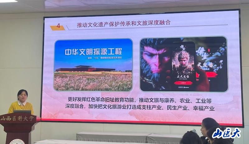 马克思主义学院“星火领航”研究生党支部书记马学思老师首先作专题分享。她以“学习习近平总书记考察山西重要讲话重要指示精神 ,用创新驱动发展”为题,带领与会党员重温了习近平总书记考察山西重要讲话重要指示精神,系统阐释了创新在全省转型发展、文化传承与改革攻坚中的核心地位,强调必须坚持以创新引领实践突破,为山西高质量发展注入强劲思想动能。