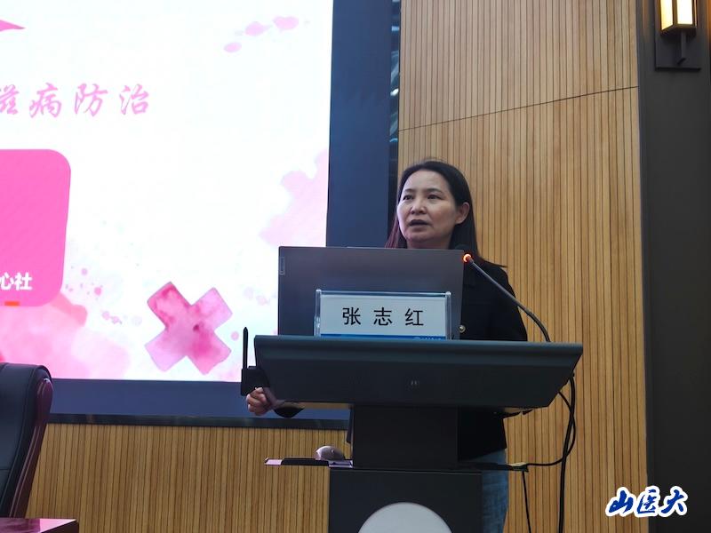 为普及防艾知识,创建无艾校园,在第38个“世界艾滋病日”来临之际,公共卫生学院于11月27日晚在杏林学生社区举办防艾健康教育专题讲座。活动由公共卫生学院分团委、学生会和心愿爱心社承办,邀请晋中市疾控中心性病艾滋病防控科科长倪小萍主讲。公共卫生学院党委书记张志红、党委副书记蔚钰琼及学院本科生、研究生等200人参与活动。公共卫生学院分团委书记张瑾主持讲座。