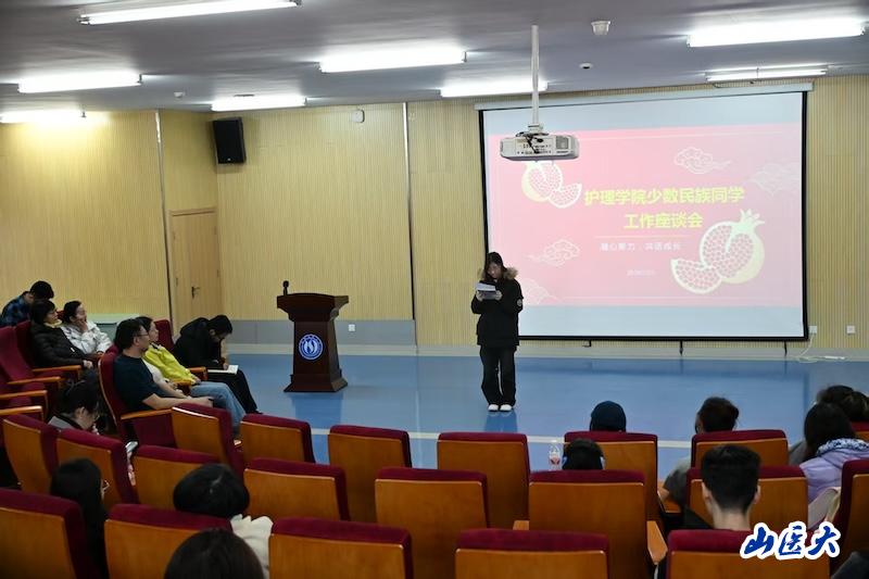 杨洁在会上指出,护理学院始终坚持以学生为中心,全力支持每一位同学成长成才。她鼓励同学们坚定理想信念,夯实专业基础,主动融入集体生活,遇到困难及时寻求帮助;充分发挥民族文化特长,积极参与学院多元文化建设,争做民族文化的传承者、民族团结的践行者。她还鼓励少数民族学生毕业后实现多元发展,可结合自身实际选择返乡建设、留晋工作或前往发达城市开拓进取。