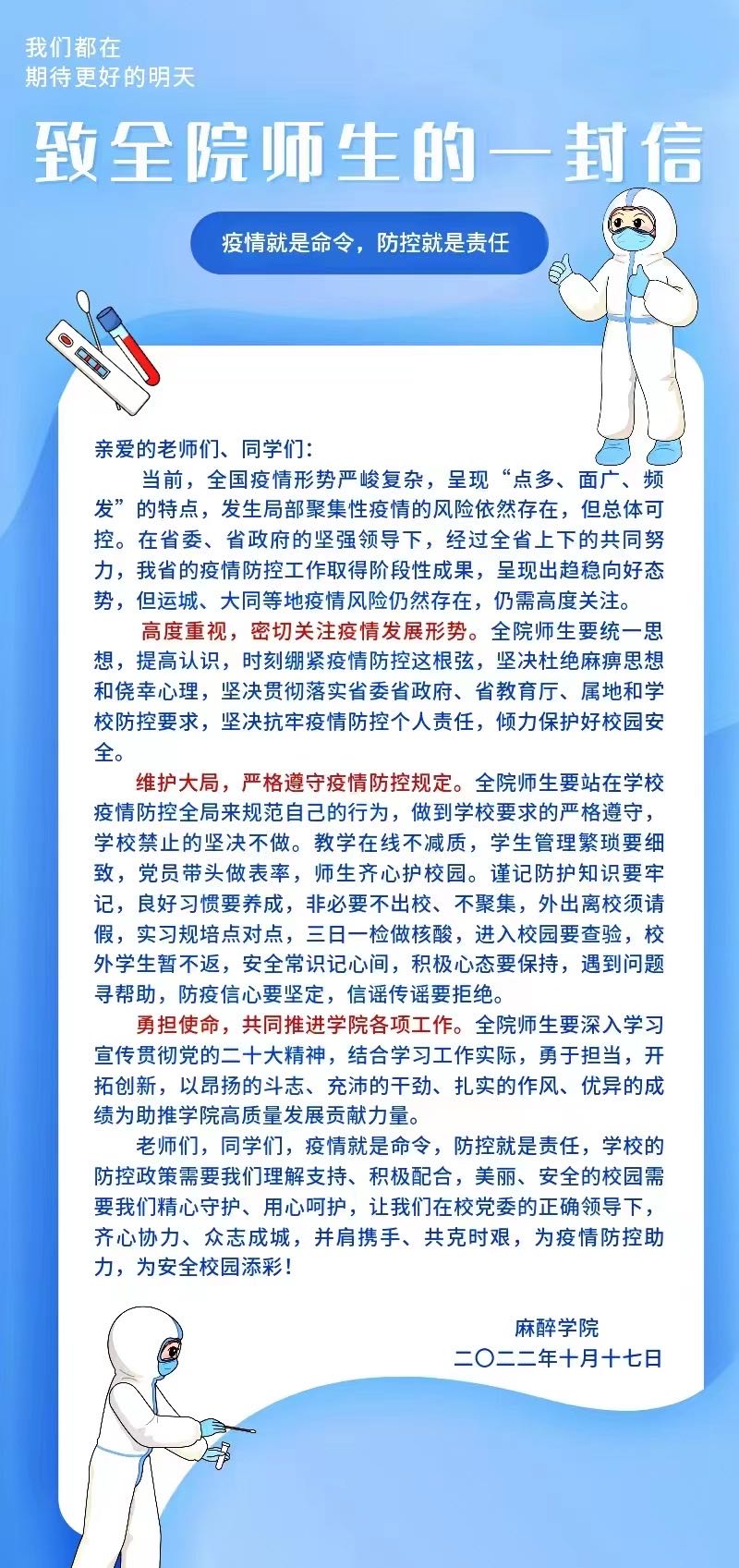 致全院师生的一封信