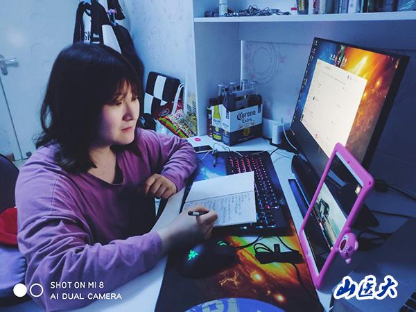 (基础医学院分团委副书记李颖老师进行抗疫原创歌曲分享)