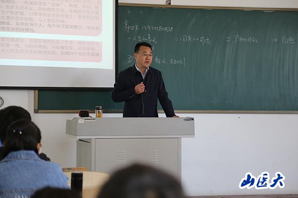 在院长翟静贤的思政课上,他从筑牢制度优势彰显中国特色,厚植爱国情怀打赢疫情之战,践行使命担当等几方面全方位解读战疫精神。用中国效率、中国速度、中国力量的事实,证明了中国制度的优越性,用战疫中鲜活的案例和典型人物及优秀校友的先进抗疫故事,彰显了一脉相承的中国精神展现出的强大精神力量。他勉励师生要进一步坚定中国特色社会主义制度自信,努力践行医学生的使命担当,成为有理想、有本领、有担当的新时代青年。