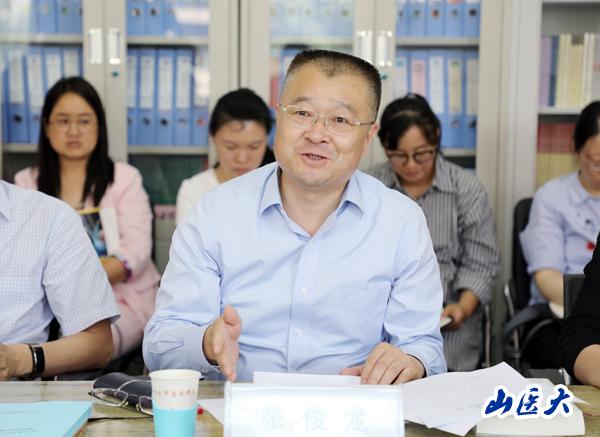 张俊龙就今后马克思主义学院的发展以及思政课教学的开展提出四点意见。一是要结合学校人才培养目标设计特色思政课。我校以医学人才培养为主要任务,思政课要围绕医学人才成长需要来设计内容,将“新医德”教育有机融入教学内容,才能找到亮点、形成特色。二是要大力开展“习近平新时代中国特色社会主义思想”理论研究。做好理论研究是加强马克思主义学院学科建设的迫切需要,是推动思政课上高度的基础,是我校思想政治工作有内涵的体现。马克思主义学院要进一步加大研究力度,进一步深入学习《习近平谈治国理政》第三卷,梳理出我校深入研究的重点课题。三是马克思主义学院要统筹规划,做好顶层设计。在学校全面开展“十四五”规划制订工作的关键时刻,马克思主义学院要提高站位,从学校发展大局出发,科学设计学院发展规划,统筹做好各项工作的改革创新,充分用好思政教师队伍,将学位点建设放在重要位置,努力解决制约学院发展的瓶颈问题。四是思想政治理论课教师要聚焦主责主业,主动作为。习近平总书记对思政课教师提出“政治要强、情怀要深、思维要新、视野要广、自律要严、人格要正”的要求,是对标的标准。思政课教师要严格按照习近平总书记的嘱托,牢记思政课教书育人的初心和使命,用真心真情去热爱学生,用全心全意去对待工作,主动担当、主动作为,紧密团结在一起,相互协作、互相支持,形成合力,为学校发展贡献力量。