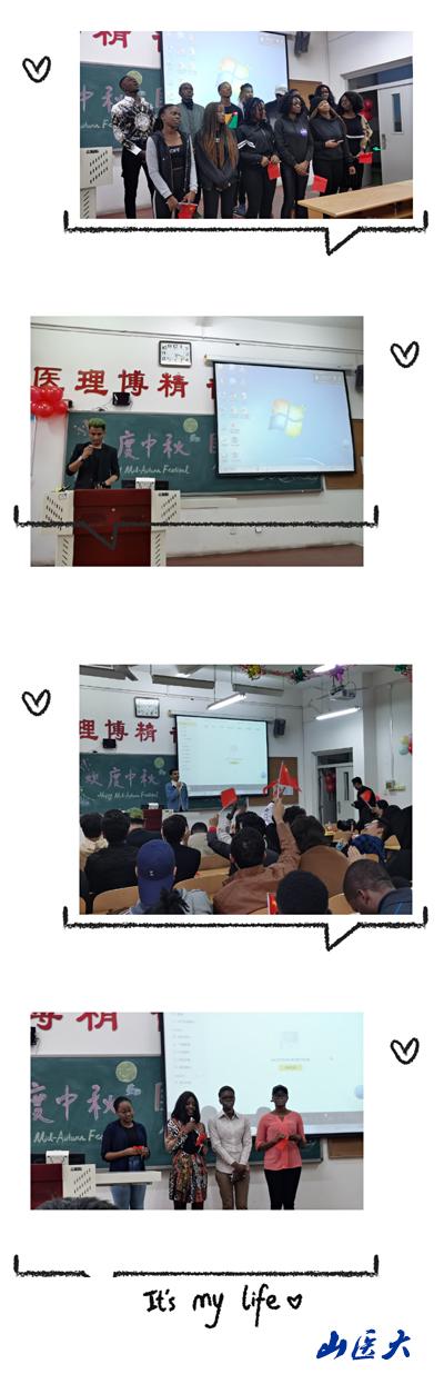 国际教育学院刘悦嘉老师为学生生动形象地讲述了中秋节的来源。国际学生随后带来了精彩的诗朗诵《月下独酌》、歌曲《月亮代表我的心》、演讲《中秋感悟》。伴着大合唱《We Are the World》,联欢活动圆满结束。