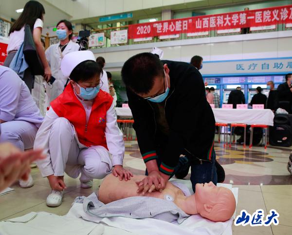 2020年是中国心血管健康联盟参与举办“世界心脏日”活动的第五年,为了唤起公众对心血管疾病及其危险因素的关注,9月29日,第一医院在门诊二层大厅举办了主题为“用心爱心”的“世界心脏日”大型义诊及健康宣教活动。副院长韩清华及心血管内科、高血压病房等科室医护人员共30余人参加活动,为广大群众提供健康咨询服务,指导心血管相关疾病合理用药及健康生活方式,开展健康宣教,并手把手教授心肺复苏急救技能。