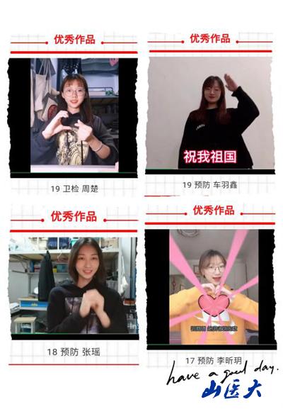 活动通过线上形式展开。同学们踊跃报名,纷纷将祝福融于手势,以独特的方式为祖国母亲献上了生日祝福。专注的眼神,优美的手势,在爱国歌曲的背景音乐之下被演绎出别样的风采。一个个动作背后是同学们爱国的拳拳之心,是对祖国无限的敬爱和赞美之情,更洋溢着少年强则国强,国强则国之少年更强的自信心。