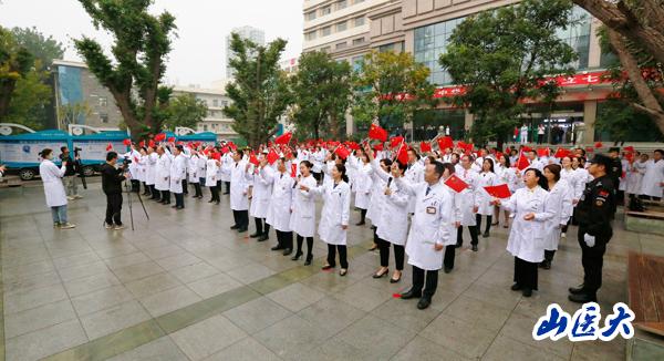 金秋10月1日,为庆祝中华人民共和国成立71周年,第一医院举行了庄严的升国旗仪式。院领导、各科室主任及护士长约200余人参加。
