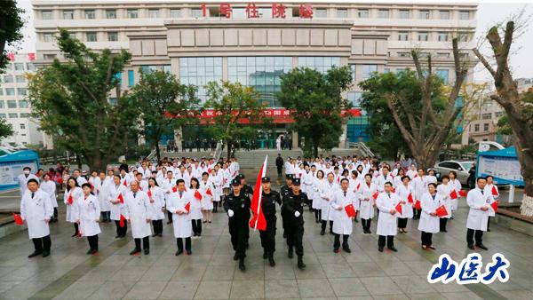 (10月1日,为庆祝中华人民共和国成立71周年,山西医科大学第一临床医学院举行了庄严的升国旗仪式。学院师生200余人参加)