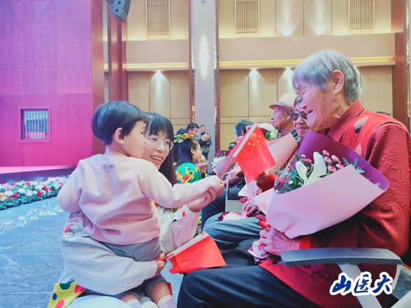 (10月1日,山西医科大学“小丑医生”志愿者参加“金秋敬老”首届公益活动,为老人们送上中秋佳节祝福)