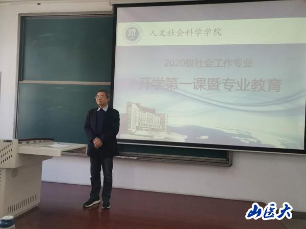 入学教育中,王志中从“医科大学和我们”“本科生涯和我们”“社会工作和我们”三个角度向同学们介绍了我校的发展历史、学科结构、专业定位,介绍了社会工作专业的学科、职业、行业和理念,他勉励同学们要努力学习、勤于思考、追求进步。