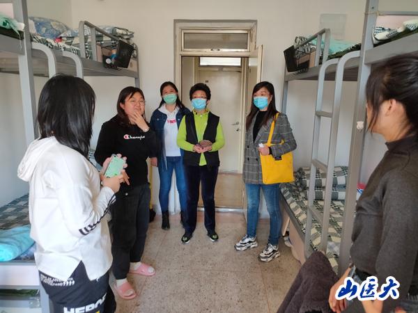 学院党总支书记付春芳、副书记杨洁、分团委书记王爽和思想政治辅导员王斌、李佳洁深入每一间宿舍看望新生,与学生进行了亲切的交谈,现场指导学生科学防控,叮嘱学生注意宿舍卫生、开窗通风,勉励大家要尽快转变角色、早日融入,室友要和谐相处、团结互助。