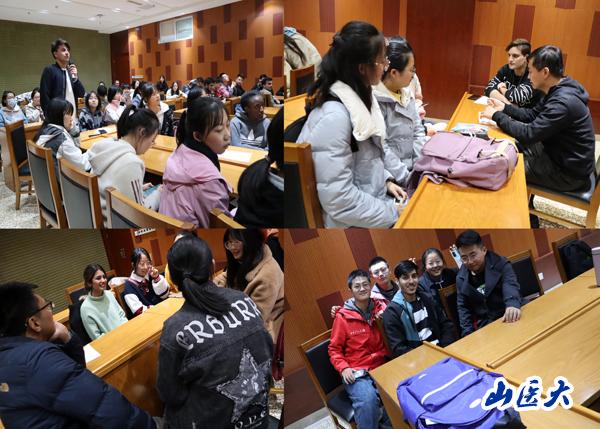 分享环节,留学生吉山通过回顾四年的来华学习时光,从一个留学生的角度,阐述如何表达一种新文化,并对文化的融合提出独到见解,并与同学们积极互动。唐佳通过幻灯与视频介绍了一位南非的历史上的国王——“沙卡祖鲁”,通过传统的祖鲁音乐,体验当地的祖鲁文化。留学生用娴熟的沟通技巧和丰富的肢体语言,生动地展示了“跨文化交际”。