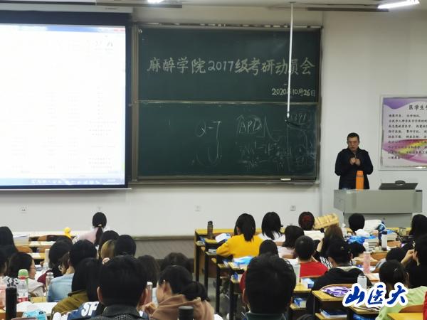 为进一步调动麻醉学院2017级学生考研积极性,力求在2022年研究生入学考试中有新的突破,10月26日晚,麻醉学院在迎泽校区20教召开2017级本科生2022年考研动员主题班会。班会邀请了生理学教师刘忠宝为大家进行考研复习指导与答疑,麻醉学院2017级辅导员王斌以及2017级全体本科生参加了班会。班会由王斌主持。