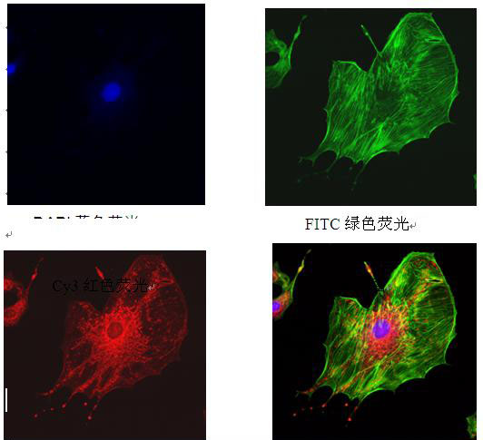 9、免疫学、环境医学和营养学。 如:免疫荧光标记(单标、双标或三标)的定位,细胞膜受体或抗原的分布,微丝、微管的分布、两种或三种蛋白的共存与共定位、蛋白与细胞器的共定位;对活细胞中的蛋白质进行准确定位及动态观察可实时原位跟踪特定蛋白在细胞生长、分裂、分化过程中的时空表达,荧光能量共转移(FRET)。